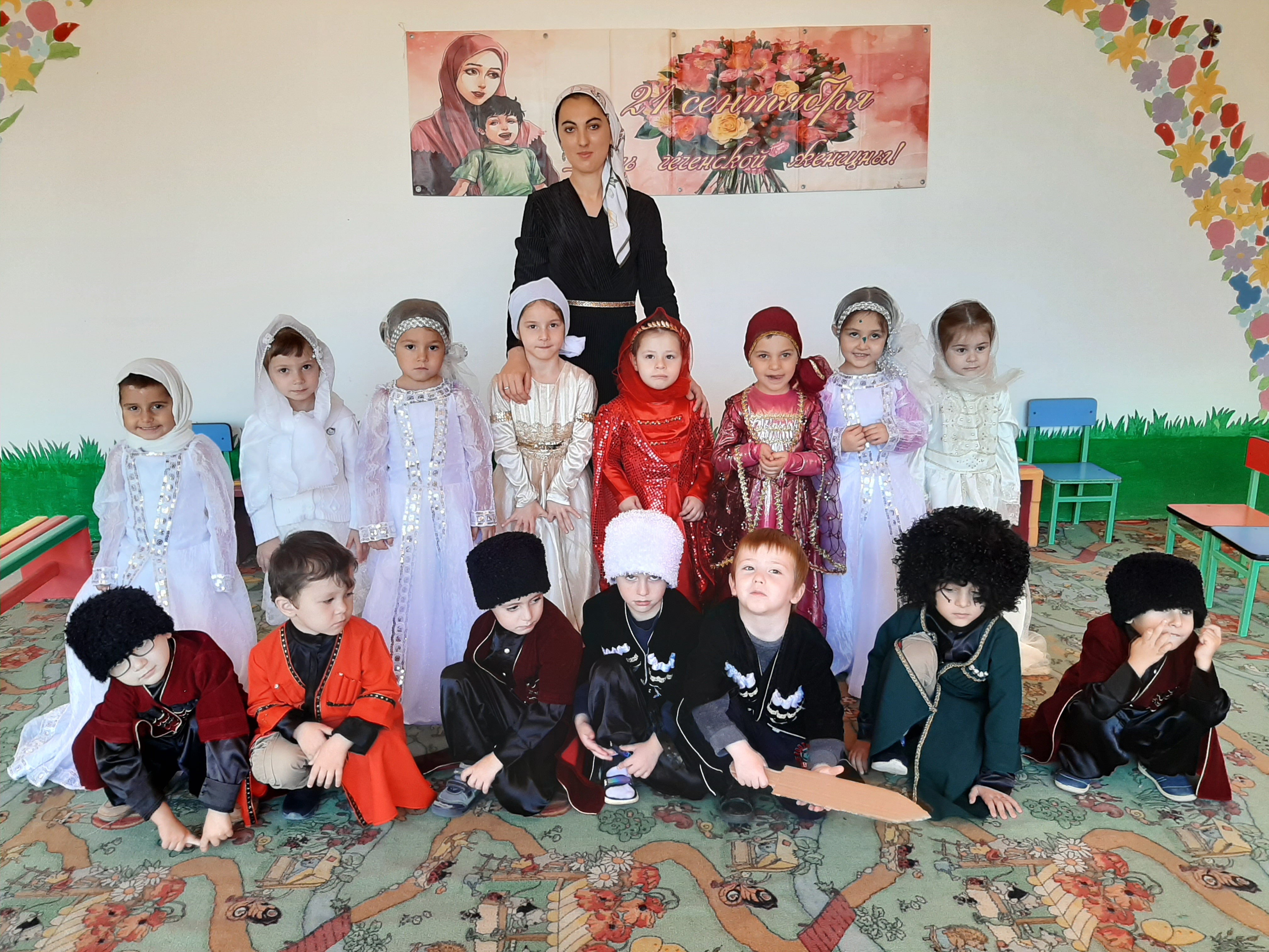 20 сентября 2019 года в ДОУ прошло развлечение приуроченное празднованию Дня чеченской женщины. Цель мероприятия воспитание любви и уважения к женщинам, ознакомление с историей Чеченского народа в которой немаловажную роль сыграли Чеченские женщины.